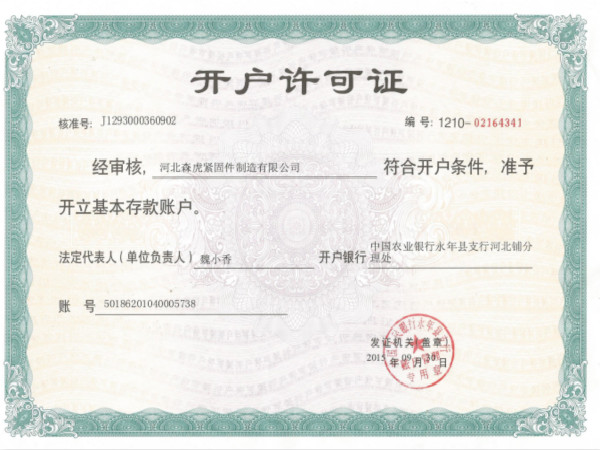 河北森虎緊固件制造有限公司成立于2011年,是建廠較早的緊固件企業(yè)。西臨京廣線,東臨京深高速,地理位置優(yōu)越,交通便利。 主要生產(chǎn):化學(xué)錨栓、機(jī)械錨栓、定型化學(xué)錨栓、高強(qiáng)度8.8級(jí)化學(xué)錨栓、自切底機(jī)械錨栓、車(chē)修壁虎,膨脹螺栓,植筋膠。 質(zhì)量方針:先進(jìn)技術(shù)、科學(xué)管理、優(yōu)良品質(zhì)、用戶滿意; ...資質(zhì)榮譽(yù)